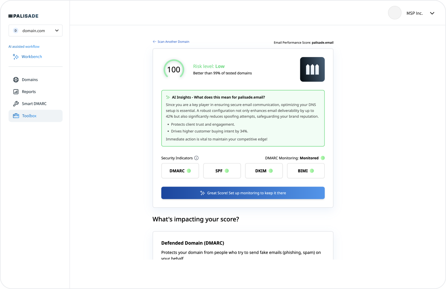 For Managed Service Providers (MSPs), Palisade offers the necessary tools to manage multiple client domains, though the multi-tenancy features and pricing would need careful evaluation. Small and Medium-sized Businesses (SMBs) might find the platform to be more comprehensive and potentially more expensive than their immediate needs dictate, especially if they are looking for a simpler, more automated solution for basic DMARC monitoring and enforcement.